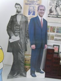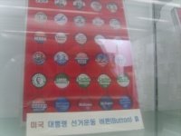 선거 배지도 많이 보이고 부시와 링컨의 전신 판넬도 보입니다. 우리나라에서도 간간히 배지를 쓰는 후보자분들을 봤는데요, 배지는 물론 성냥이나 담배커버 등 여러 마케팅 수단을 사용해 선거운동을 하는 다른 국가들의 사례를 배워 선거운동의 다양성을 높이는 것도 정치에 대한 관심을 환기하는 토대가 되지 않을까 싶네요.