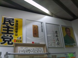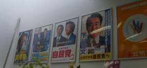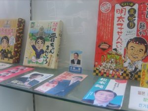 일본의 경우, 정당명만 내세운 민주당, 크레파스가 담긴 접시를 선보여 약간은 형이상학적인 공명당 포스터 등 가까운 나라임에도 스타일은 달랐습니다. 중간에 놓인 사진에서 볼 수 있듯, 일본에서는 선거를 앞두고 홍보를 위해서 총리나 대표 정치인의 얼굴이 담긴 과자를 판매한다고 하네요. 순간 우리나라에서 손학규 쿠키나 박근혜 사탕이 출시될 걸 생각하니 흥미로웠습니다.