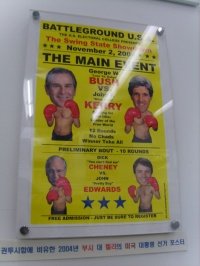 부시와 케리가 맞붙은 선거 표스터도 보이네요.