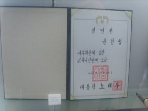 아래 사진은 김일성 훈장 증서입니다.