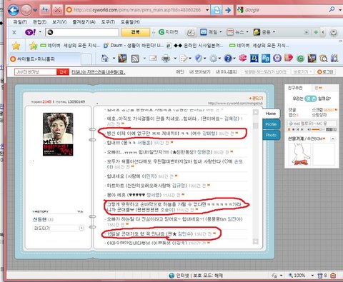 저번에는 mc몽씨 홈피에 들어가봤는데 위로하는 글들뿐이더라구요