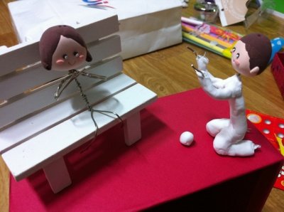 모든 장식이 끝나면 만들어 놓은 인형을 붙입니다.
