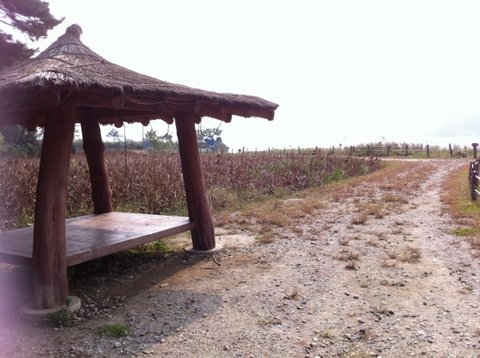 어쨌든 출발하고 한 20분 걸었나... 철길 옆에 저렇게 잠시 쉴 수 있는 공간까지 마련되있어서