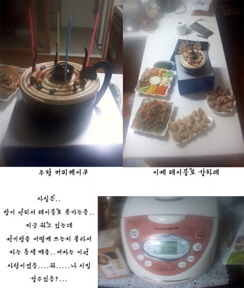 저녁 여덟시부터 요리시작해서 새벽 세시쯤? 엄마가 들어오심 동생깨워서 축하축하하고