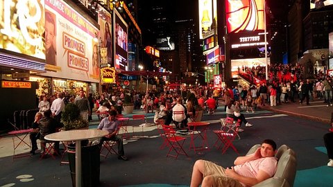 타임스퀘어에 가보면 의자가 놓여있고 사람들이 몰려있는 장소가 있는데, 친구와 거기에