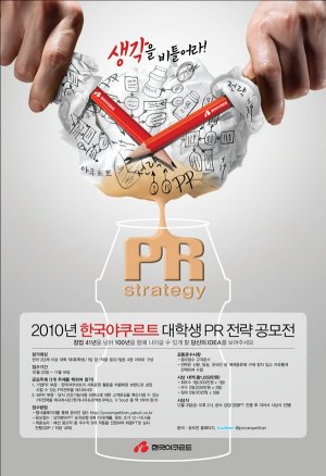 다음은 2010년 한국야쿠르트 대학생 PR전략 공모전입니다. 이건 1팀당 1작품만 응모 가능하네요. 기업PR 부문은 한국야쿠르트의 사회공헌 활동을 차별화된 브랜드로 성장시킬 수 있는 PR전략, MPR 부문은 건강기능식품 브랜드에 대한 고객관심을 확산시킬 수 있는 PR전략을 제시하는 건데요. 이건 아무래도 이리저리 알아보고 컨셉을 찾아내는 게 중요할 것 같네요. 이 공모전 기한은 11월 19일 까지네요.^-^