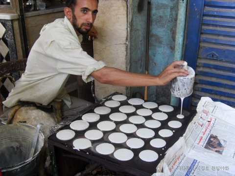 할와[아랍식 달콤한 과자] 만드는 아저씨
