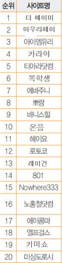 ★10월 마지막주 연예인 쇼핑몰 TOP 20 ★