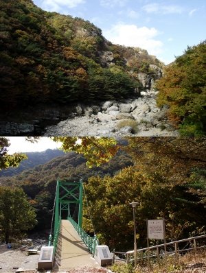 그리고 운일암 반일암 옆에 무지개 다리입니다. 걸어갈때마다 흔들흔들 거리는게 무서워요 ㅜㅜ