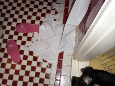 개껌을 줘도 안먹으니...... 벽지가 맛이있나..?
