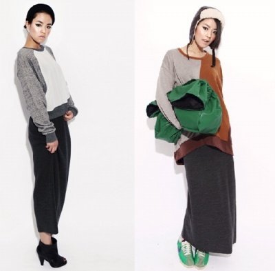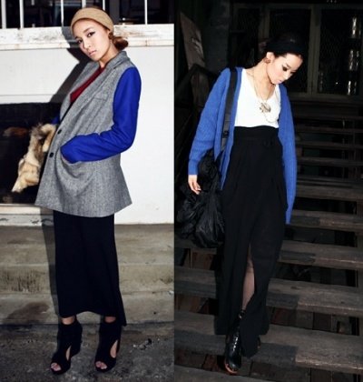 미니멀한 롱 스커트/롱 원피스에 다양한 스타일의 자켓을 매치하였네요.