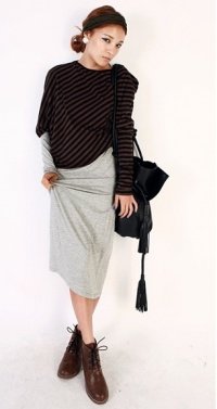 어디에도 잘 어울리는 그레이 롱 스커트.