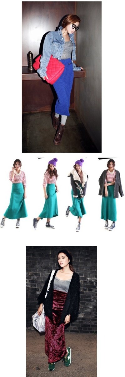 다양한 컬러의 롱원피스/ 롱 스커트 코디를 보아주세요~.