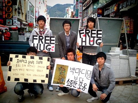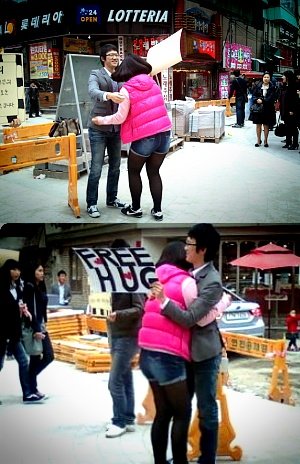 프리허그 피켓을 든 사람이 올바른 프리허그 의미를 알고