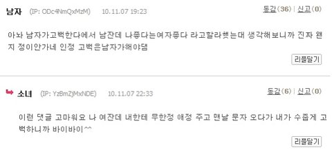 >> 남자톡커분의 리플