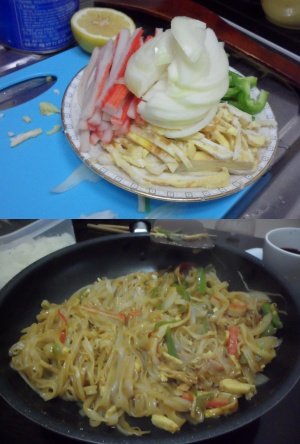 그래서 역시 남은 재료를 끌어다 면을 넣고 볶음면을 만들었습니다.......