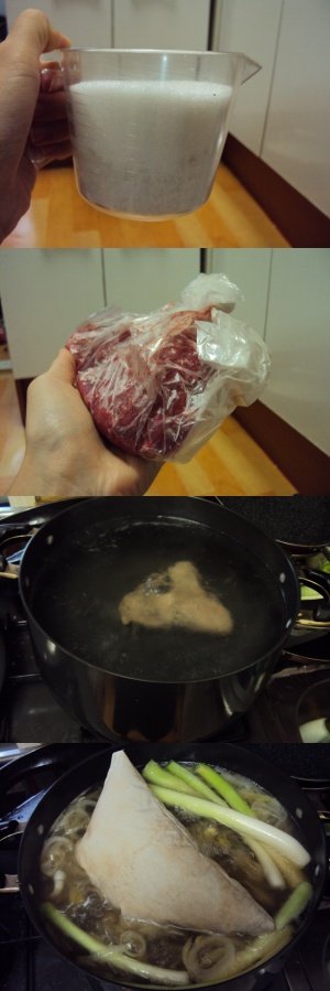 설탕과 소금은 1:1 비율로 맞춰주고요, 양지는........걍 한덩이........???