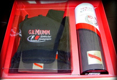 꼬르동 루즈 Mumm샴페인과 F1 모자 그리고 티셔츠가 담아 있었다.