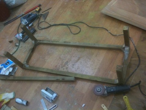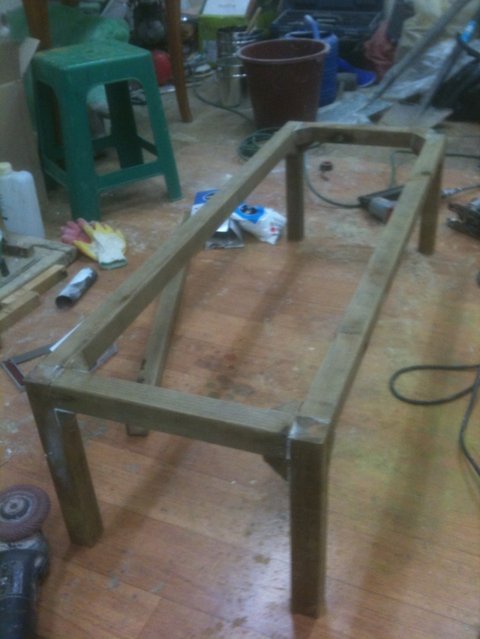 일단, 40mm두께의 각목으로 프레임에 다리 4개를 만들었습니다.