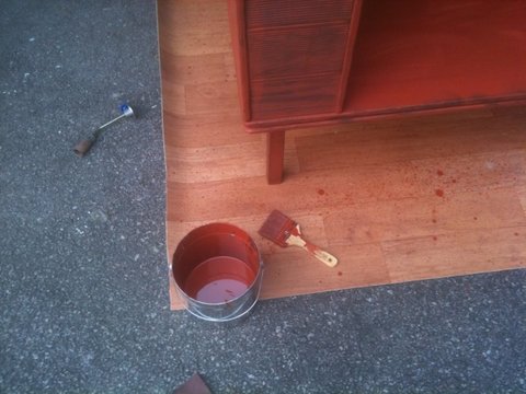 좌측 상단에 있는 토치램프(아시죠? 부탄가스에 연결하면 불이 나가요.)로 한번 그을린 후, 저 붉으죽죽한 갈색 페인트를 바릅니다. 촌스럽게..