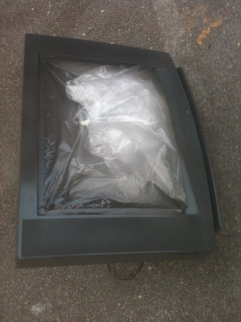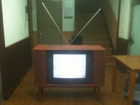 약속 시간이 다 되어.. 운반 차량을 기다리는 옛날 TV..