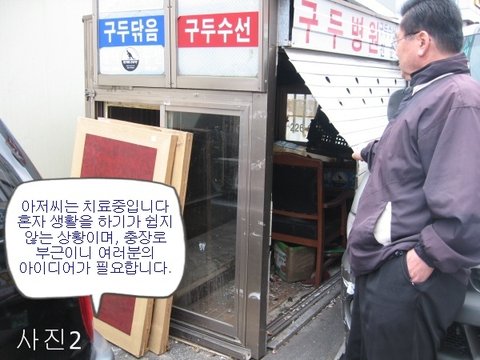 기사가 나간 뒤 구두병원 아저씨는 요양원으로 보냈단다. 동구청과 경찰 분들에게 시민의 한사람으로 고마움을 전합니다.