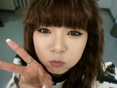 입술을 '쭈~' 내밀어 보이며 귀여운 표정을 짓는 현아양