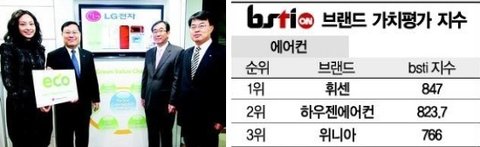 휘센, 브랜드 가치 평가 지수 에어컨 부분 1위