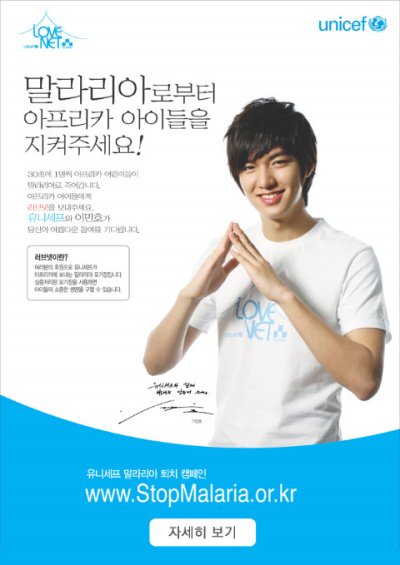 유니세프 말라리아 홍보대사로 있는 이민호의 이름으로