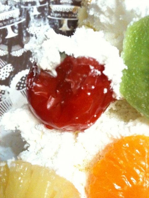 엄마가 과일을 예전 케익에 붙여놨던걸 또 사용한것같다고 하시더라고요
