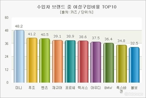 또한 아래 그래프를 보시게 되면 수입차 브랜드에서도 미니가 1위를 차지한 것을 볼 수 있습니다.