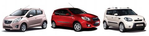 ( 경제성을 고려한 경차와 소형차 왼쪽부터 마티즈 크리에이티브 / 젠트라X / 쏘울 )