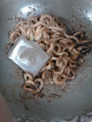 두 조각을 넣으니 농도가 더 진해지고 짜파게티 같고 맛있어 보였음.