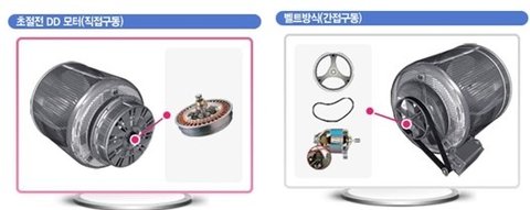 대부분의 드럼 세탁기 모터가 벨트 방식에 머무르고 있는 반면
