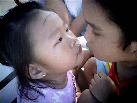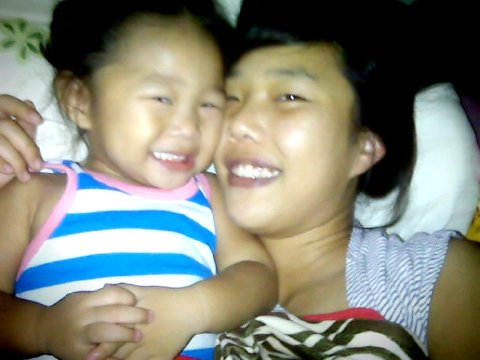 "엄마? 디쓰 마이 뽄-. 유 셰얼 랩땁. (this is my phone, you share laptop)"