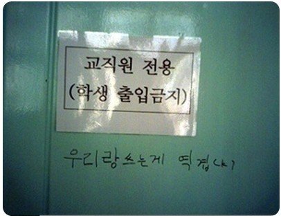 이제는 그 자리에 우리가 문에다가 XXX 선생님 전용 칸이라고 써놓을 정도로 애용? 하세요..