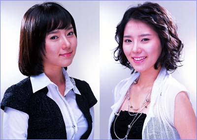 드라마 루루공주의 주인공 김정은 스타일로 요즘 인기를 끌고 있는 자잘한 웨이브 헤어. 되도록 작은 웨이브를 말아 화려한 볼륨감을 준다. 나이 들어 보일 수 있으므로 앞가르마를 타고 양 쪽으로 핀을 꼽아주거나 귀 아래 부분에 양 갈래로 묶어주면 귀엽다.