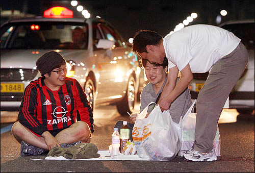 민주시민답게 차도에서 먹을것 먹을려는 시민(?), 뒤에 교통은 완전 마비