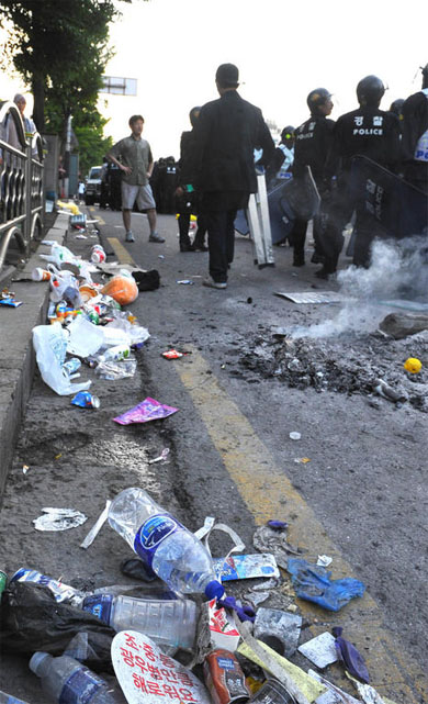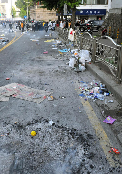 평화시위대들이 지나간후 걸레가 되버린 도로