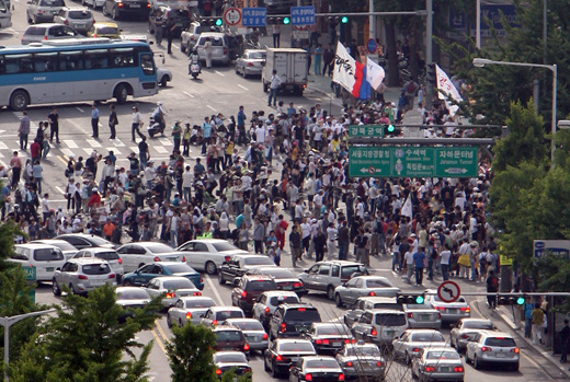 평화시위대들이 도로점령하여 극심한 교통정체