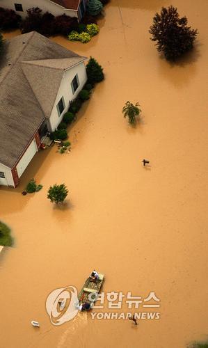 Severe Weather Midwest Flooding <YONHAP NO-0079> (AP) [AP] 2008-06-15 06:01 A house and a boat sit underwater in a residential neighborhood near the Des Moines River on Saturday, June 14, 2008, in Des Moines, Iowa. (AP Photo/Kevin Sanders)/2008-06-15 06:01:00/