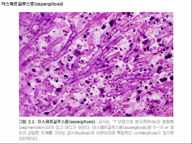 Aspergillus fumigatus(곰팡이균)가 병인체 이다.