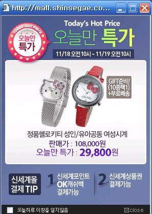 그런데 시계를 찾을 수 없었습니다. 광고에 나온 시계는 가격이 달랐기에 행사시계가