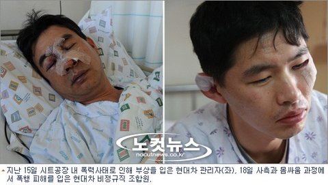 현재 한공장에 500명이상이 들어가 있으며 공장의 창문과..출입문은 현대가 자물쇠 등으로 모두 봉쇄되어 있으며
