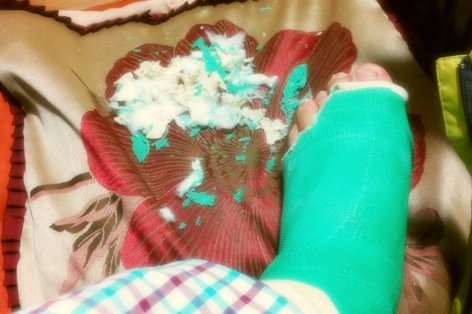 알고보니 새끼발가락이 깁스안에 숨겨져서 구출해달라고 꼼지락 ... ㅜ