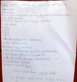 아침 실천사항(이과정은 모두 AM 7시까지 이루어져야 함)