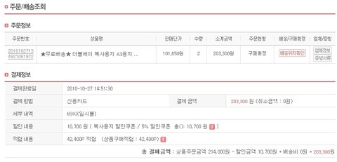 아래 내용의 인터파크 저의 결제정보입니다.