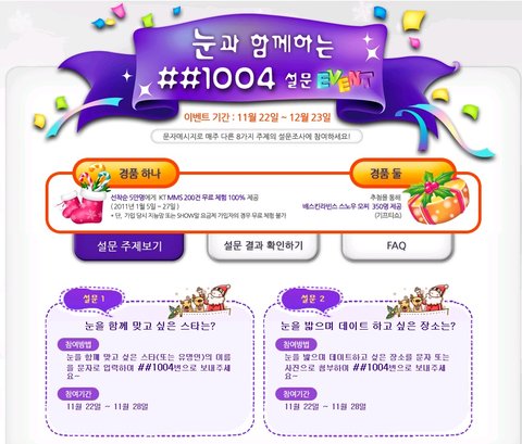 첫눈기념으로 KT에서 설문 이벤트를 실시하고 있네요 .