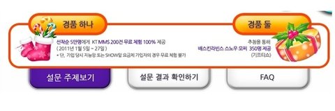 경품 하나 : 선착순 5만명에게 KT MMS 200건 무료체험 100% 제공