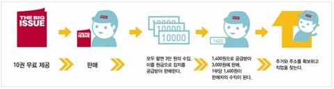 자선단체게가 아니라, 잡지 발행을 통해 홈리스의 자립을 돕고 자체적으로 이윤을 창출,